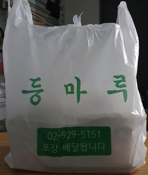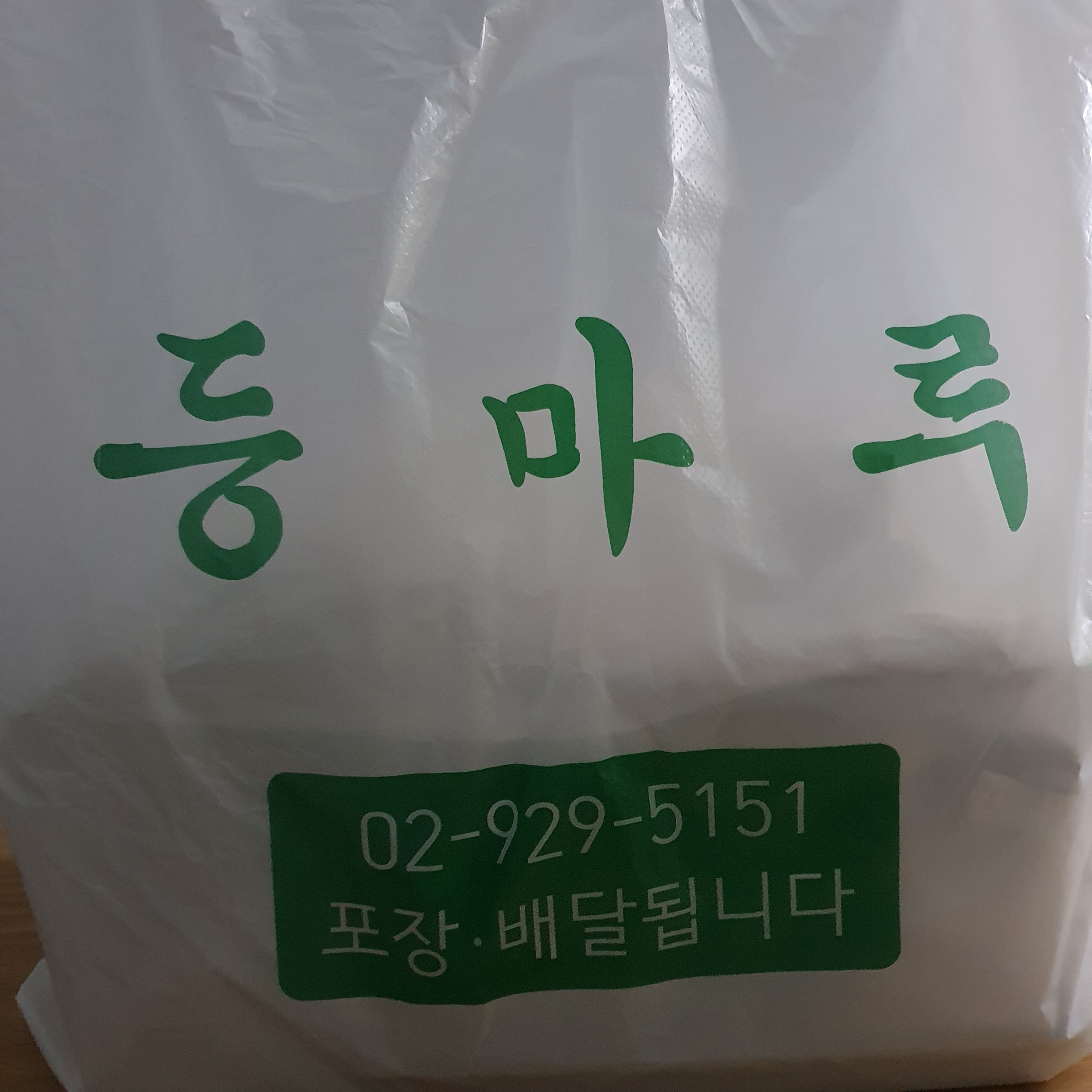 아니 가게 포장비닐이 이렇게 엄근진 하게 보이나요? 등 마 루 초록색으로 세글자 적힌 건데도 나는 맛집이다!! 하는 것 같군요