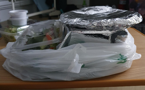 비닐봉지 크기에서도 이미 보이는 음식의 양입니다! 어마어마한 양이 왔는데요 저는 곱창 2인분을 시켰을 뿐인데 엄청 무거웠답니다. 아니 이게 뭐야 이러면서 ㅋㅋㅋㅋ 제가 여태 받아본 배달음식 중 양이 제일 많은 곳이었습니다.