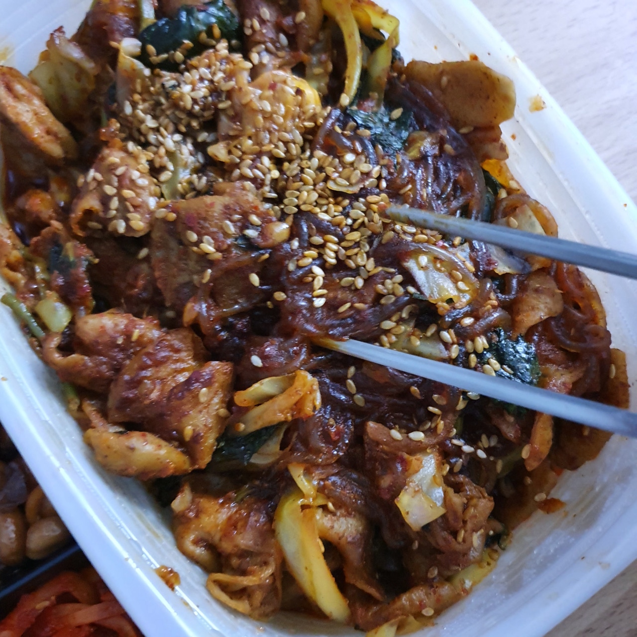 이렇게 당면도 가득 같이 왔습니다. 역시 곱창은 양념묻힌 야채곱창이 최고인듯합니다. 양과 가격 맛 모두 잡을 수 있었습니다. 어우 그리고 저 당면 너무 맛있었어요,,, 곱창에 빠질 수 없는 당면!!! 친구랑 먹다 보면 당면 순삭이라 좀 아쉬운데 등마루는 그런 아쉬운 양은 절대 없는 점! 최고 최고!
