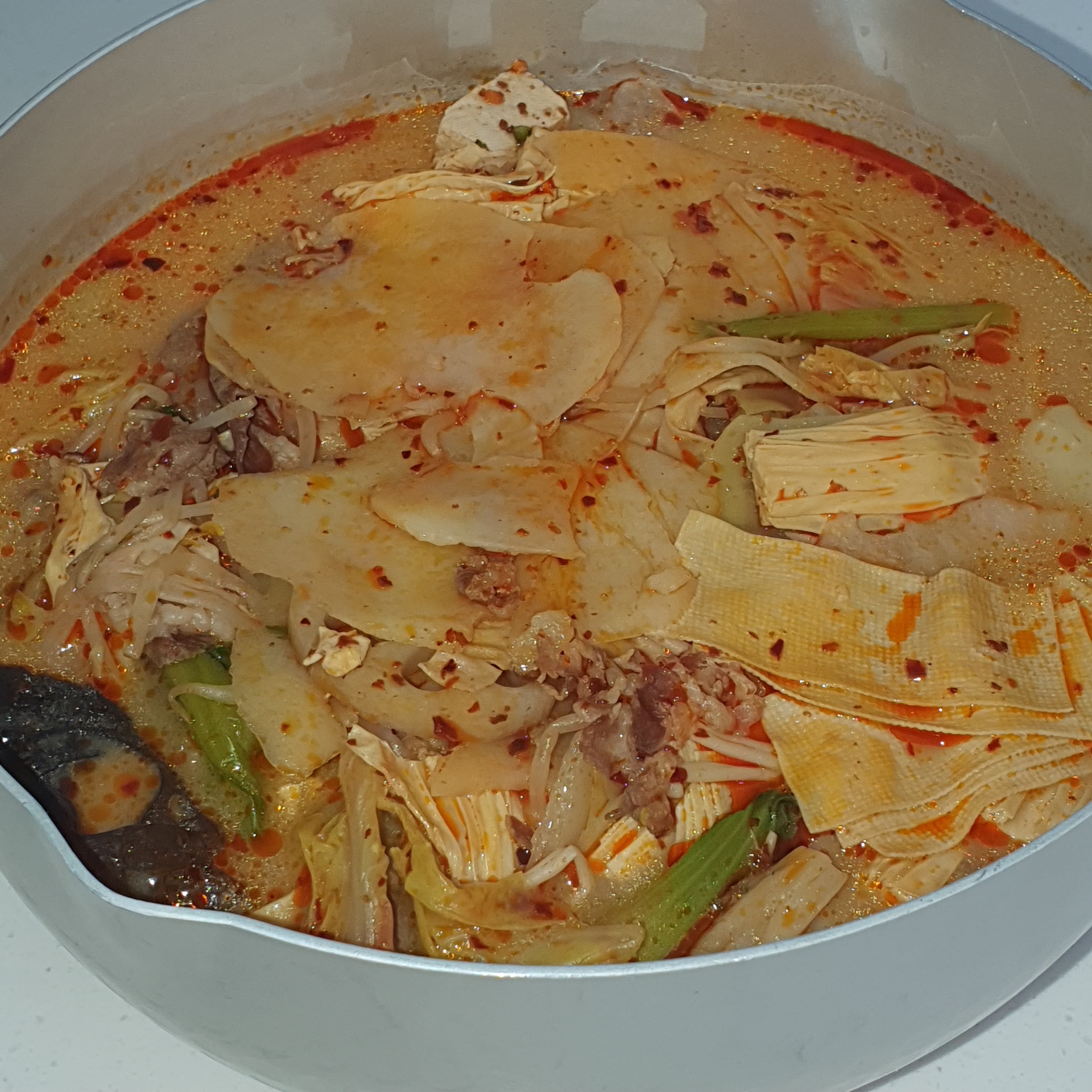 냄비에 저는 항상 옮겨 담아서 먹습니다. 이유는 비닐봉지에 더 이상 놔두고 먹고 싶지 않은 마음도 있고요! (환경호르몬이 이미 나올 대로 나왔을 것 같지만...) 음식을 꺼내서 먹을 때 상당히 불편하기 때문도 있습니다. 또 마라탕은 양이 기본적으로 많은 음식이라 남길 가능성도 있기 때문에 나중에 끓여서 다시 먹을걸 예상하고 미리 하기도 합니다.