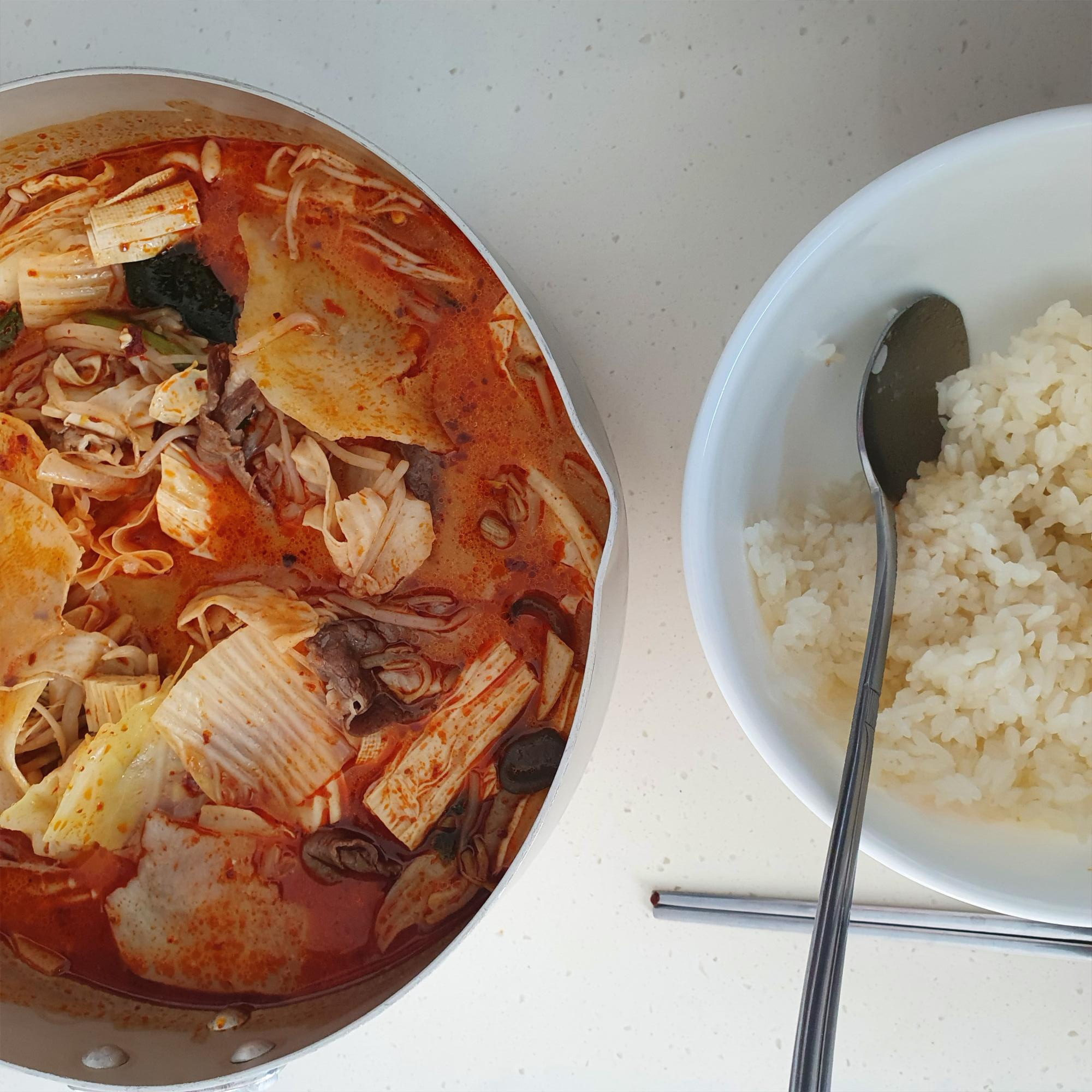 아참 그리고 배달을 시키면 밥을 미리 해두셔야겠지요? 밥추가도 가능하지만 이게 신기하게도 국물 음식에는 밥을 많이 먹게 되더라구요! 추가로 밥을 3공기 시키기엔 돈이 적지가 않습니다 무려 3천원이나 더 내야하기 때문에 저는 밥을 넉넉하게 해서 국물에도 싹싹 다 말아서 배빵빵하게 먹었답니다~